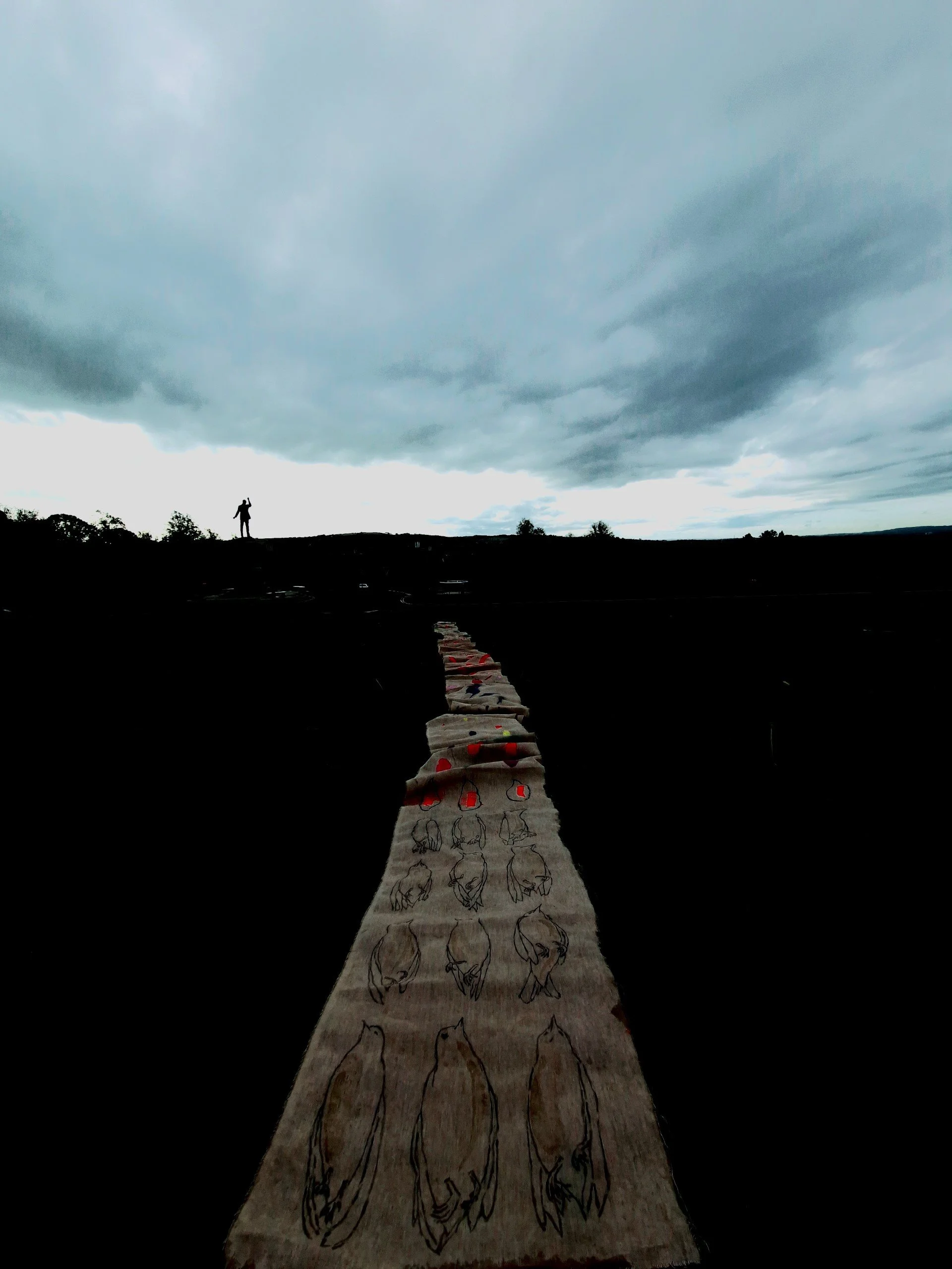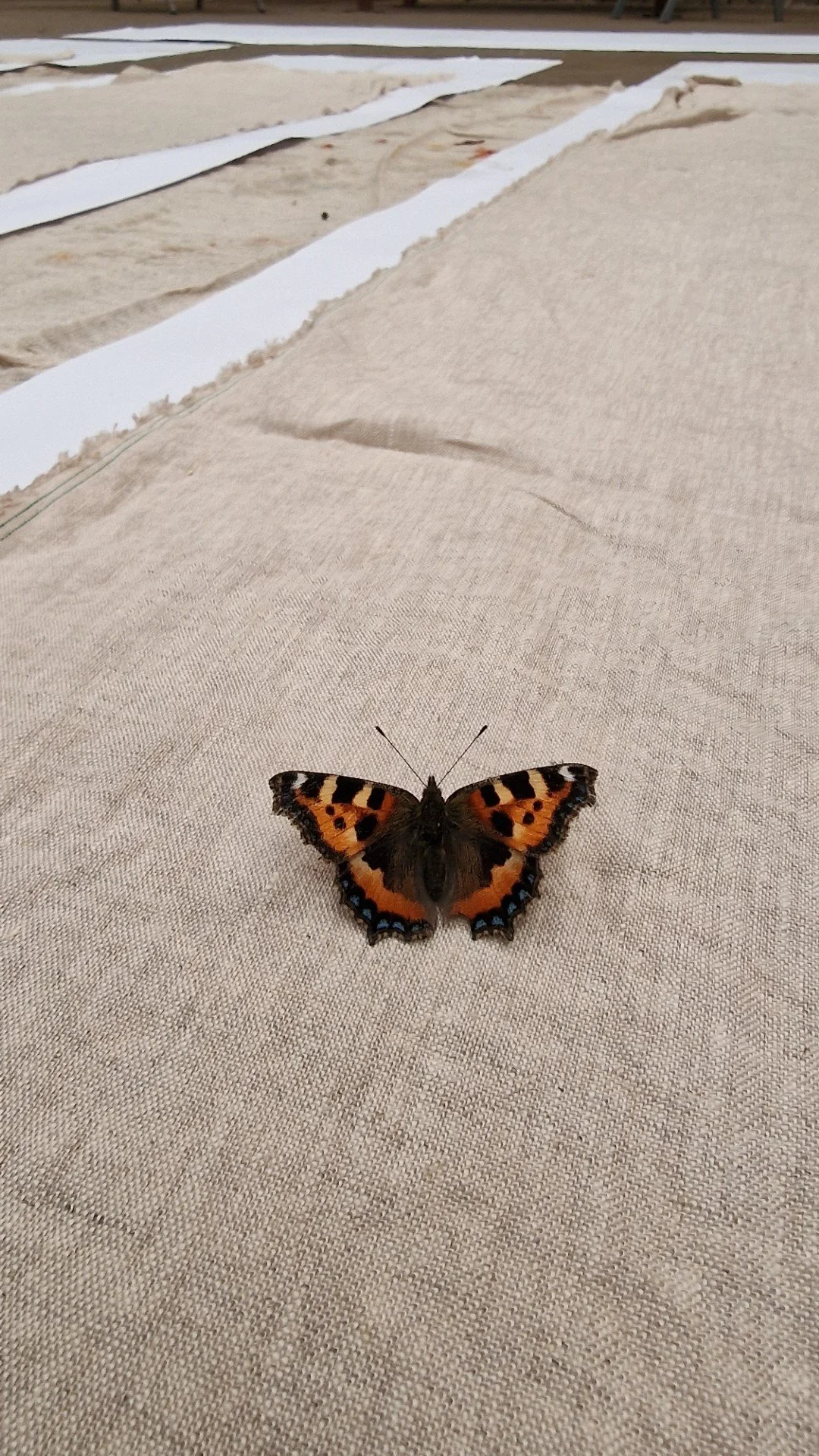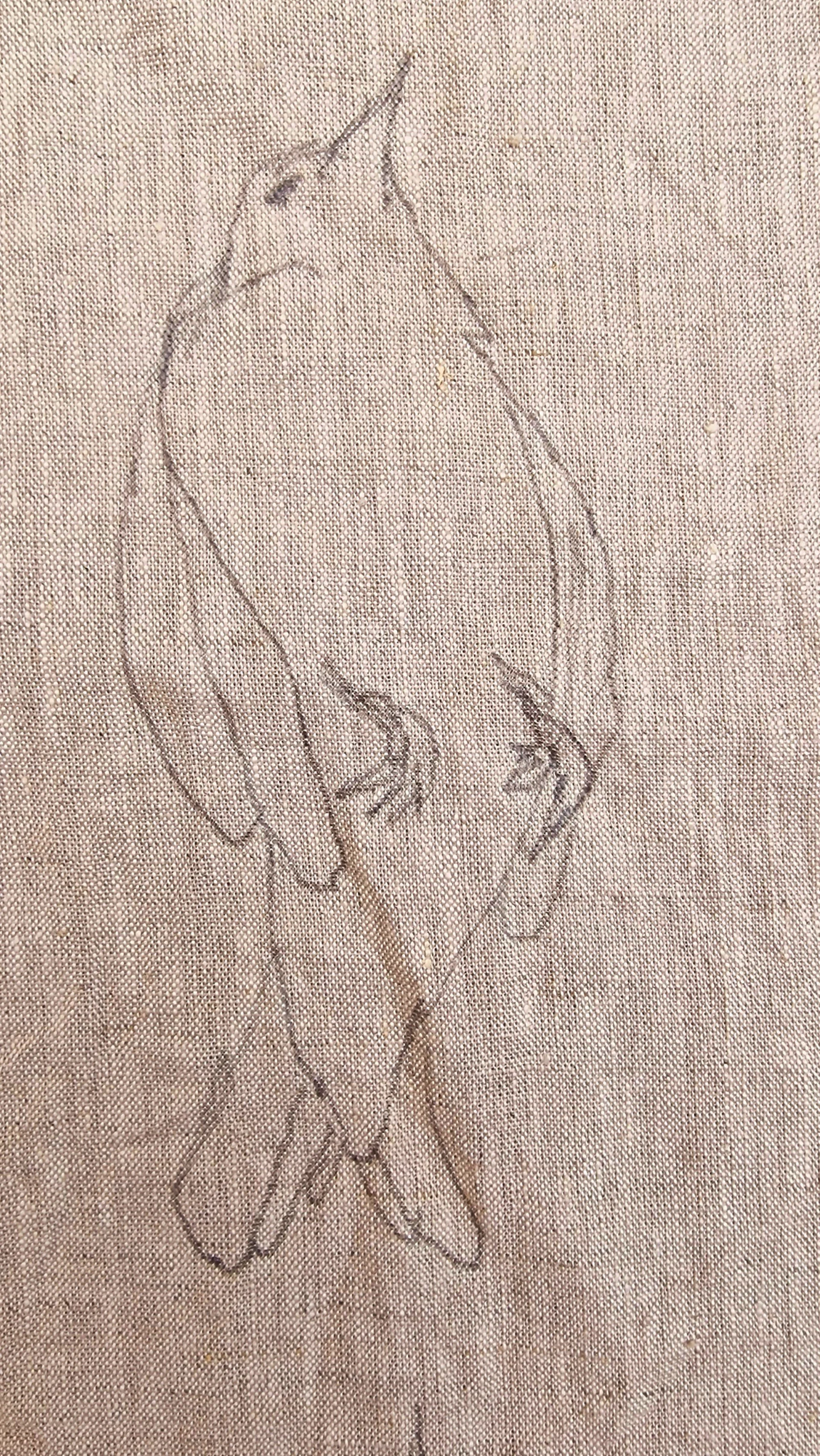 The work is made on linen, another part of our heritage and landscape that has disappeared. Linen damask weaving is on the red list of endangered crafts along with coracle making, glove making and many other old crafts such as whitework and goldwork.